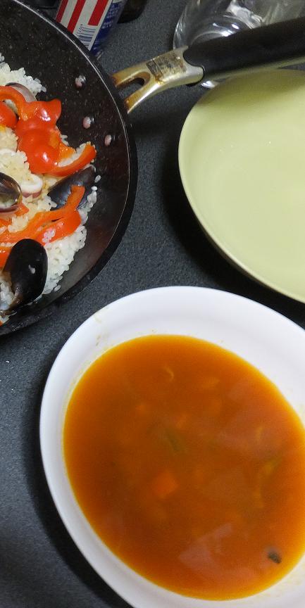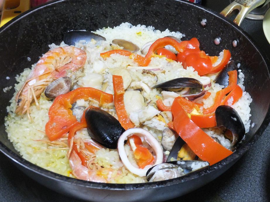 少し離れた大きなスーパーでパエリアセットという魚介パックを見つけた。