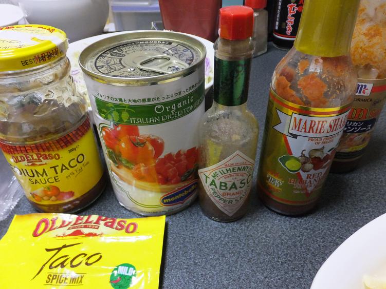 た~は嬉しそうです。調味料いろいろ並べてました。