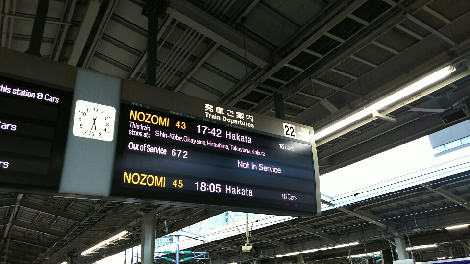久々に休みが合ったので、新大阪まで見送りに行きました。