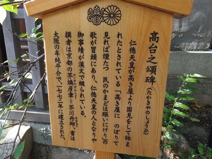 そしてここの高台から仁徳天皇は下々を眺め、かまどに煙が上がってないので民の暮らしが窮乏していると気付き徳政を行ったという言い伝えがあります。