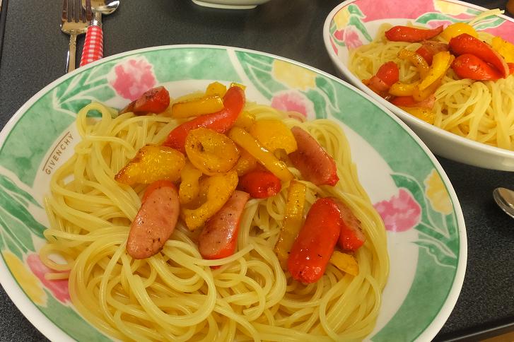 た~が作ったパプリカと赤ウインナーのクリーミーパスタ