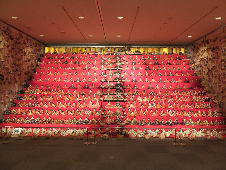 入ってすぐのところに、壁一面、天井まで届く大雛段!