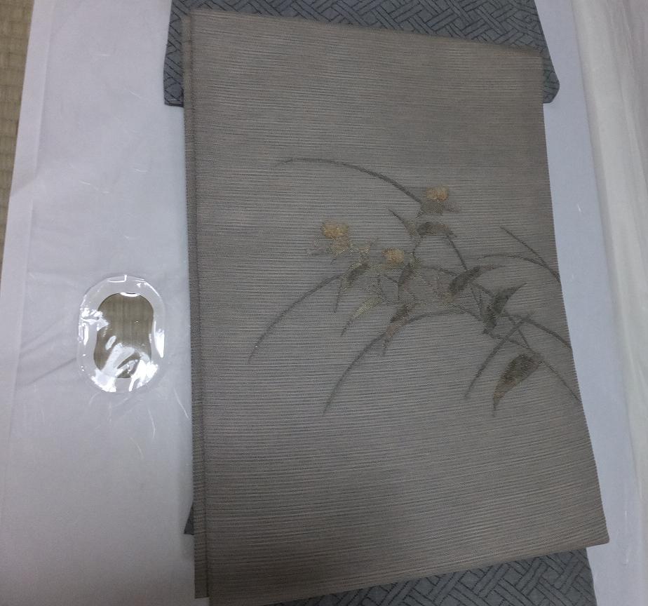 この帯にはグレーより白っぽい明るい色の着物の方が合うと思います。