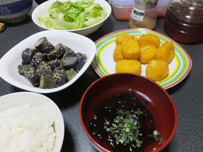 そしてまたあるときは、クリームコロッケに茄子のおひたし、アオサのお吸い物