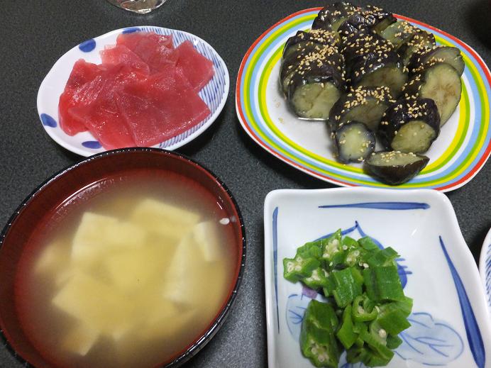 茄子のおひたしにまぐろのお刺身にオクラ