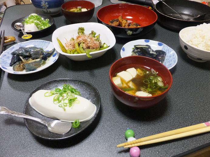 焼き鱧、伏見唐辛子の焼いたの、た~の好きな茄子の煮びたしにとろろ昆布のお吸い物、「やさしくとろけるケンちゃん豆腐」も最近人気ものです。