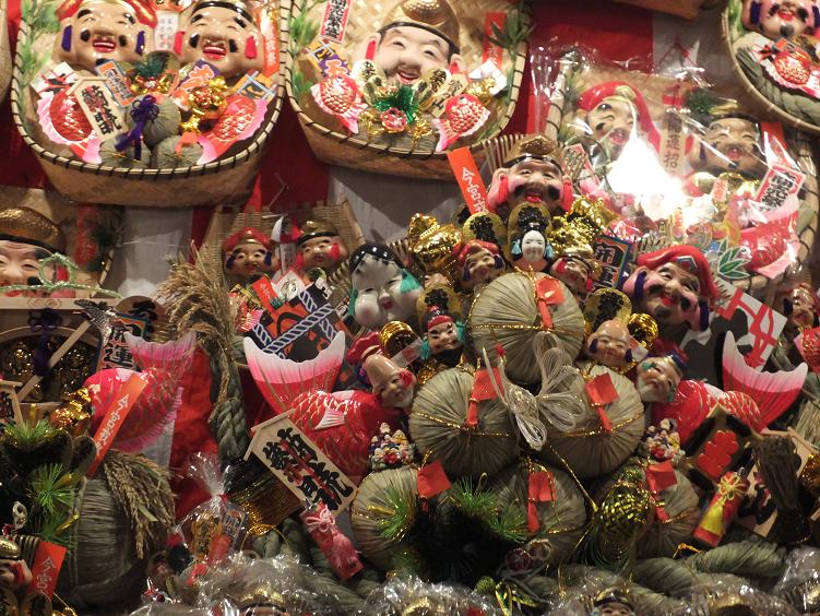 参道は一方通行。帰り道の方に身長より高い熊手を持った人がいました。すごっ!