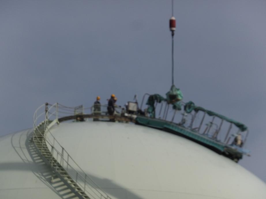 ドームの上で作業してる人がいました。