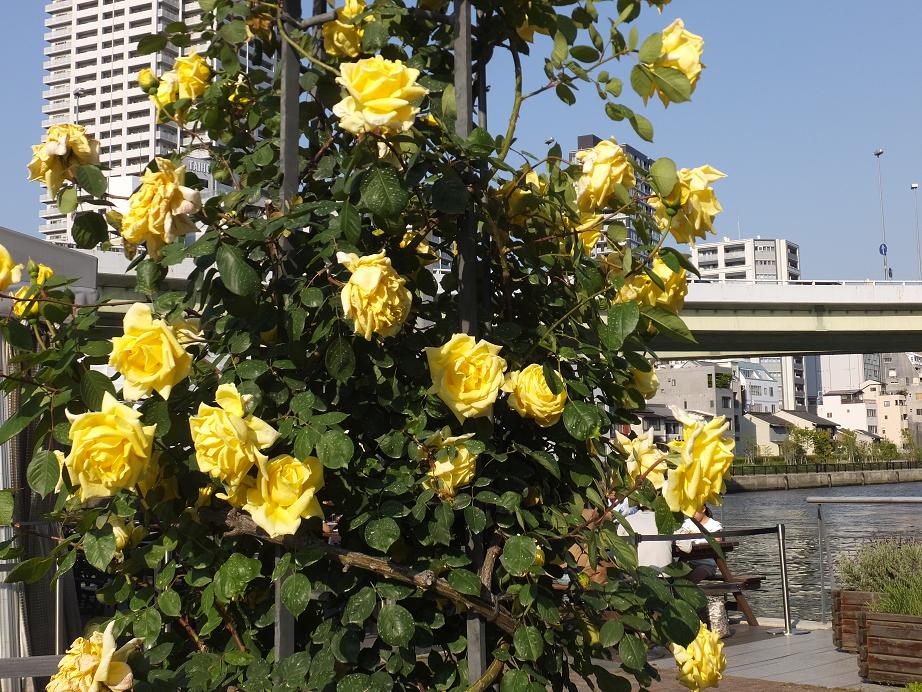 川沿いの公園にバラが植えられていて、無料で開放されてます。