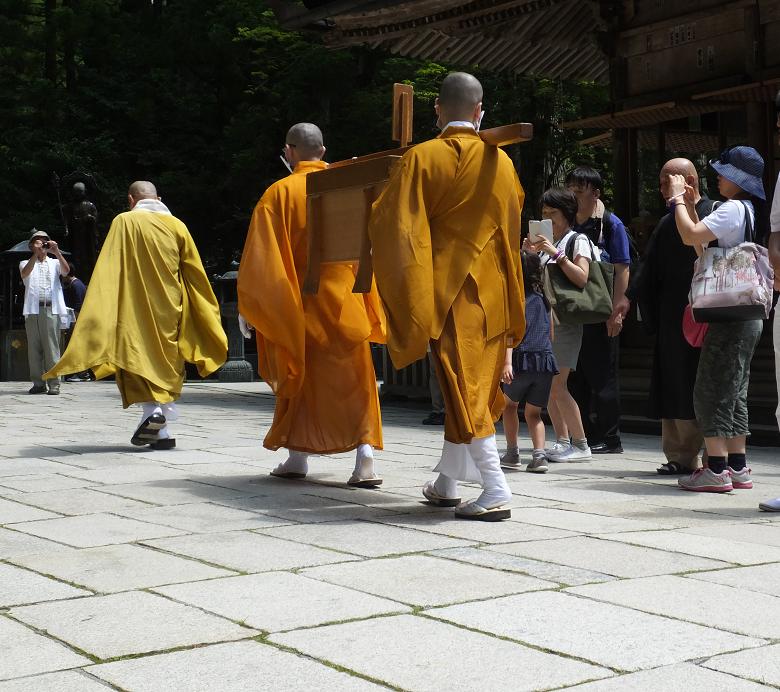 味見のあと、食事は白木の箱に入れられ2人の僧によって運ばれます。