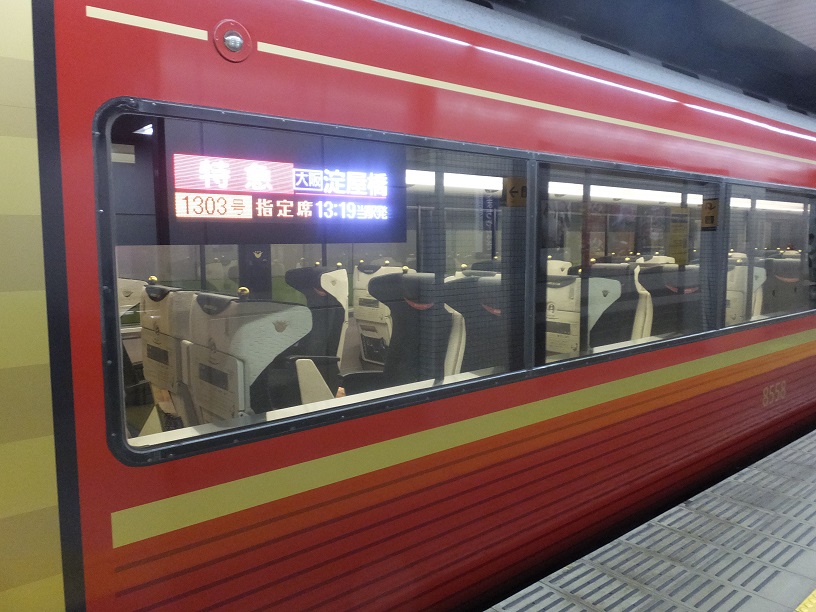 今年の8月から導入された京阪のプレミアム・カーで向かいます。